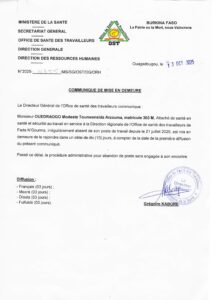 des Travailleurs de Fada N’Gourma est prié de rejoindre son poste